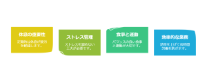 • 毎日の働く時間を意識し、休憩をしっかりとる